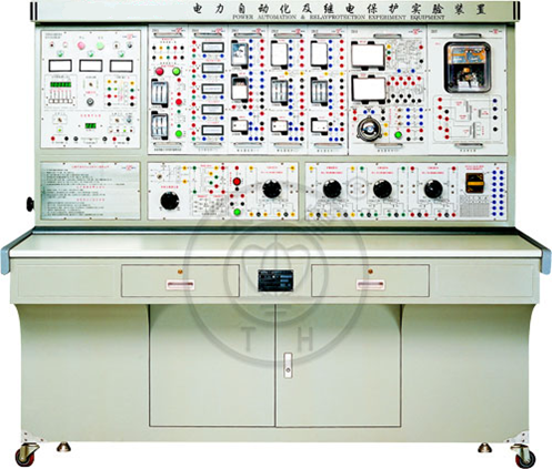 三、电力自动化及继电保护实验装置 电力自动化及继电保护实验装置”是综合了目前高等院校《继电保护》、《电气设备》、《自动装置》、《工厂供电》、《电力系统微机保护》等多门专业课程中的教学内容,结合生产实际应用和发展,能对发电厂、变电所及工厂中常用的继电保护、电气二次控制回路及自动装置等教学内容进行操作实验,能以真实直观的实验教学形式对学生进行专业技能训练,为学生走向社会,从事发电厂、变电所、工矿企业的供配电工作,继电保护系统的设计、安装、调试、检修等,打下良好的基础。本装置设备器件利用率高,实验教学系统性强,占用实验场地少,性价比高。 技术性能: 输入电源:三相四线 380V±10%50Hz 工作环境:温度-10℃~+40℃ 相对湿度<85%(25℃)海拔<4000m 装置容量:<1.5kVA 外形尺寸:187cm×73cm×166cm