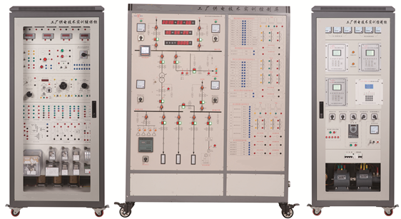 四、工厂供电技术实训装置 工厂供电技术实训装置主要由控制屏、控制柜和继保柜、监控软件、导线架组成。可为电气工程及其自动化、电气自动化专业及相关专业的《供配电技术》、《工厂供电》等课程开设实验教学,结合工厂供配电技术的工业现状及发展趋势,够完成供配电系统继电保护、二次回路,自动装置、倒闸操作等多方面的实验内容。 技术参数 输入电源:三相四线~380V±10%50Hz±2% 整机容量:≤3kVA 台体尺寸:1700mm×1400mm×600mm(控制屏) 1700mm×700mm×600mm(控制柜) 1700mm×800mm×600mm(继保柜) RS-485通讯接口;标准MODBUS通讯协议 微机保护装置:刻度误差:不大于1%;测量电流:0.2级;母线电压:0.2级;输出精度:0.2级;频率:0.01Hz;P、Q、COSΦ:0.5级;通讯分辨率:不大于1ms;能完成基本的保护功能,可实现测量、事件记录和故障录波等功能。
