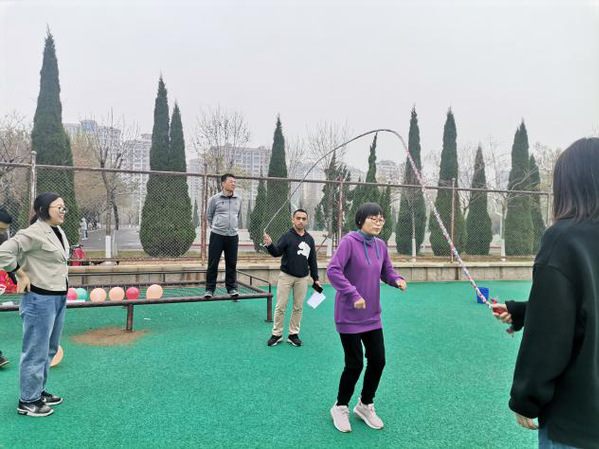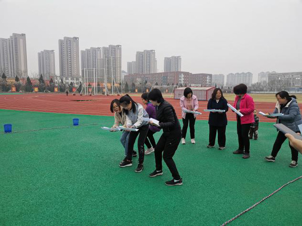 细雨初停,春寒料峭,依然没有挡住电气工程学院女教师们的参赛热情,活动现场,老师们个个精神饱满,激情四射。活动分为三个比赛项目:连续传递、跳绳、背对背拥抱,女老师分为两队,大家分工合作,现场气氛热烈,比赛紧张有趣,学院领导和部分男老师也到现场加油助威。