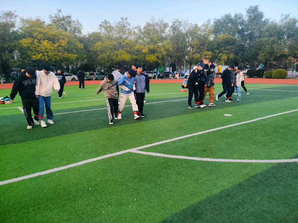 活动前期,各班负责人充分宣传,鼓励同学们积极参加。活动开始,由本次活动负责人向同学们介绍本次团建的主题和游戏规则,同时提醒同学们要注意安全。参加活动人员首先自愿分为4个或者5个小组,参加两人三足、老鹰捉小鸡、吹气球等活动。各个活动都调动着同学们每个人的洞察力和判断力,充分发挥团队协作精神。每个同学都表现的非常热情和积极,在相互交流的过程中增进了同学们的了解和友谊。活动过程中欢笑声不断,同学们默契配合,共同协作完成了一个又一个的活动任务。快乐的时光总是短暂的,活动最后,由本次活动负责人再次重申了本次活动的意义,祝愿22级新生有一个愉快充实的大学生活,至此,活动圆满结束。