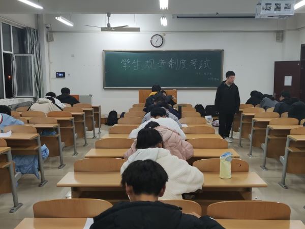 此次考试采取线下闭卷作答,为保证考风考纪,每班均有院学生会学习部干事负责监考,严格要求每位同学们树立正确的考试观念。同学们也自觉遵守考场纪律,认真答题。此次考试设有选择、填空、简答三种题型,以《学生手册》中的相关规章制度为基础,涉及到学校校风校训、奖学金评选、学生违纪处理、综合素质测评、学籍管理规定、请假制度、宿舍管理、学生行为准则等诸多方面的重要内容,对同学们进行了一次细致的摸底考察。考试结束后,同学们纷纷表示通过此次考试更加深入了解了学校的校规校纪,强化了遵章守纪意识,明确了作为一名合格大学生应该遵守的行为规范。