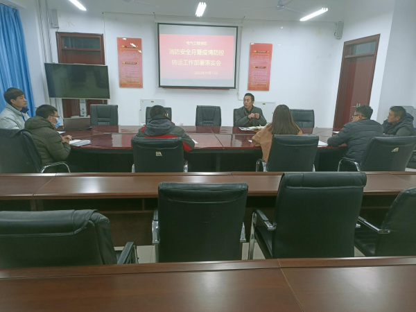 为深入贯彻落实习近平总书记对消防安全工作的重要讲话精神,提高广大师生的消防安全意识,有效防范火灾事故的发生。同时根据目前疫情防控形势,为保障涉疫师生转运隔离工作有序开展,2022年11月13日,电气工程学院在11号教学楼313教室主持召开了冬季防火月暨疫情防控转运工作部署落实会,会议由党总支书记杜常青同志主持,涉疫转运工作相关负责人、引导员与全体辅导员参加了此次会议。