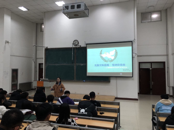 本次心理健康知识宣讲会上,首先,由王莉围绕着当代大学生交际困难的原因、交际困难的具体表现、如何解决交际困难问题等多个方面的展开详细讲解,针对大学生人际交往中存在的问题,她提出几点建议:一是要秉承平等、尊重、诚信、的原则,把握好互利和适度两个观念;二是要学会倾听、学会换位思考;三是要努力提升个人形象,优化个人魅力。随后,心理辅导站张明辉同学分享了人际交往的技巧,为大家讲解拥有良好人际关系的必要性。在活动过程中,心理辅导站的同学亲切和蔼,不时与台下的同学进行互动,用幽默亲切的语言将积极心理学理念渗透进同学们的心灵。活动最后,现场同学提出了许多自己的思考和疑问,辅导站成员们对大家的问题一一回复,耐心细致地解答了所有疑问,并给出了一些有关情绪调节的建议和方法。全场的气氛活跃轻松,十分精彩,同学们均表示受益匪浅,对心理健康等问题有了新的认识。