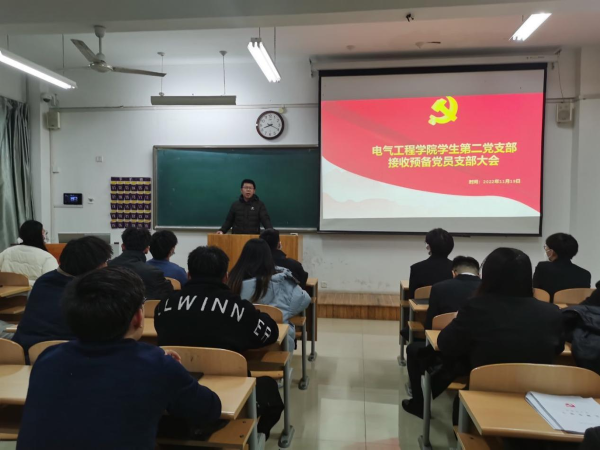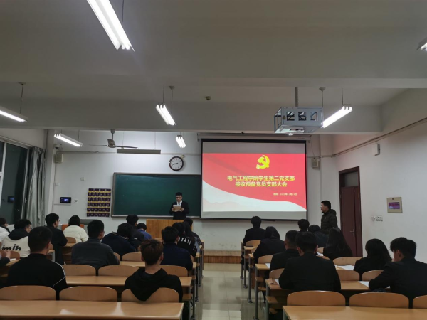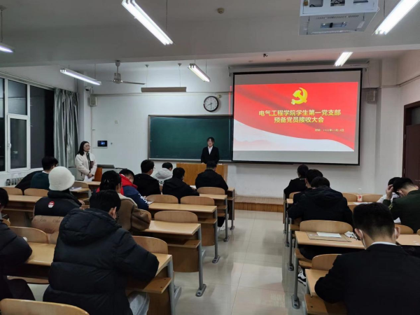 为进一步壮大党员队伍,不断增强党组织的凝聚力和战斗力,做好基层党组织建设,为党的队伍注入新鲜血液、新的生机。2022年11月19号晚上8点,电气工程学院学生第一党支部与第二党支部在8号教学楼401教室和402教室召开学生预备党员接收大会。本次会议由学生第一党支部书记王莉同志和第二党支部书记赵建斌同志主持,全体学生党员和发展对象参加了此次会议。