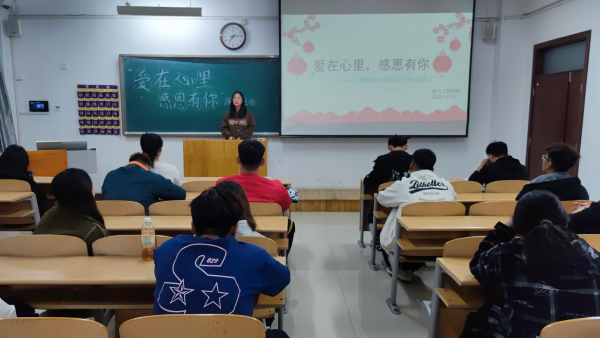为了营造更加和谐的校园环境,加强学生素质教育培养,弘扬感恩文化、践行感恩教育,培养同学们的感恩之心。2022年11月23日,电气工程学院在8号教学楼402教室开展以“爱在心里,感恩有你”为主题的演讲比赛活动,此次比赛活动由我院心理辅导站组织,报名参赛的选手及学生观众参加了此次活动。