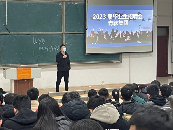 会议首先由青软集团公司代表向同学们详细介绍了自身企业的员工职业发展、工作环境、薪资待遇,企业需求的岗位情况、技能要求、居住生活环境等。本次面向的毕业生包含电气工程学院在内的多个专业,其中设有系统运行、自动控制、电力电子技术、信息处理、试验分析、研制开发、经济管理以及电子与计算机技术应用等具体岗位,为同学们提供丰富的岗位选择。