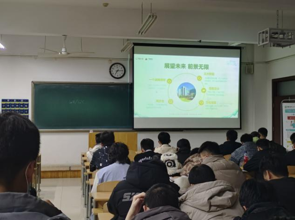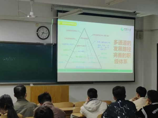 中国人寿集团属国有大型骨干金融保险集团,下设八家一级子公司、一家全国性股份制银行广发银行,业务全面覆盖保险、投资、银行等板块。企业代表首先通过短视频为同学们介绍中国人寿财险的基本情况,详细讲述了中国人寿财险的发展历程,让同学们了解中国人寿集团的历史变迁,并为同学们介绍了集团的企业文化、世界排名与品牌价值等。随后,宣讲人员与同学们进行现场互动,询问大家对中国人寿的印象与认识。参会毕业生对自己疑惑的问题进行提问,招聘负责人耐心为同学们解答,现场气氛活跃。