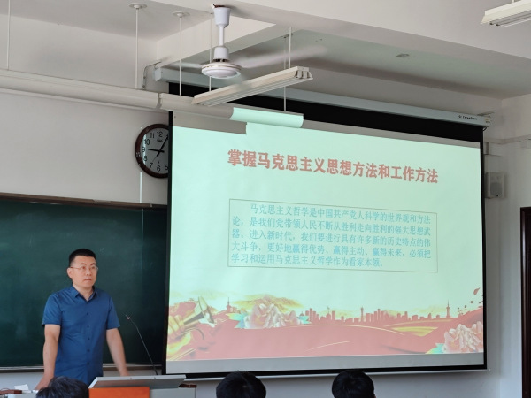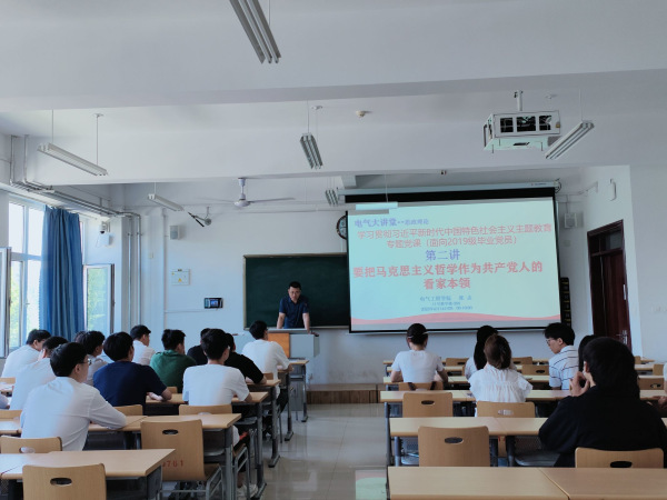 为深入开展学习贯彻习近平新时代中国特色社会主义思想主题教育,按照学院毕业生教育工作方案,6月14日上午,电气大讲堂在11号教学楼205教室为毕业生开设了题为《要把马克思哲学主义作为共产党人的看家本领》的专题党课。专题党课由院党总支副书记讲授,2023届全体毕业生党员聆听了专题党课。