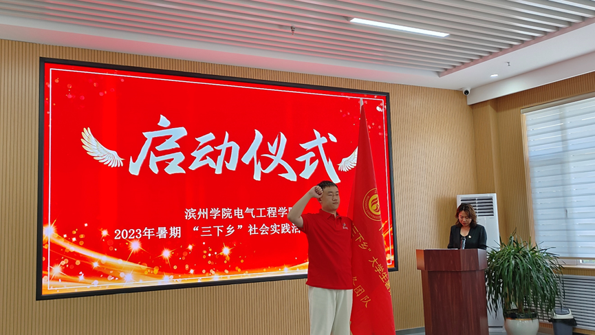 志愿服务团代表师恩康表态发言,他说,“基层是最好的课堂,实践是最好的教材,群众是最好的老师。开展暑期‘三下乡’社会实践活动,是提升广大青年的综合素质,展现电气学子的责任与担当的大好时机。广大实践队员要学会用脚步丈量祖国大地,用眼睛发现中华精神,用耳朵倾听人民呼声。我们一定会在带队老师的具体指导下,团结协作,全力以赴,力争圆满地完成预定的各项实践任务。在实践中运用我们学到的理论知识,积极参加志愿服务活动锻炼自己,本着坚定不动摇的心,去看、去思、去行,用我们的努力和汗水去圆满地完成这次实践活动。