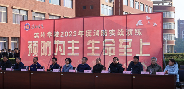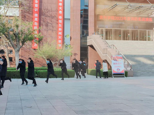 在演练现场,电气工程学院的50名2023级新生在学院的组织下,提前二十分钟列队到达图书馆南侧广场,他们身着统一服装,整齐列队,展现出了电气学子的精神风貌。在消防员的指导下,同学们学习了如何正确使用灭火器材,如何进行简单的急救等技能等知识。而后,滨州市消防救援支队、滨州学院火灾事故应急处置工作领导小组成员现场进行了逃生的演练,让同学们更加深入地了解了火灾发生时的应急处置方法,提高了自我保护能力。