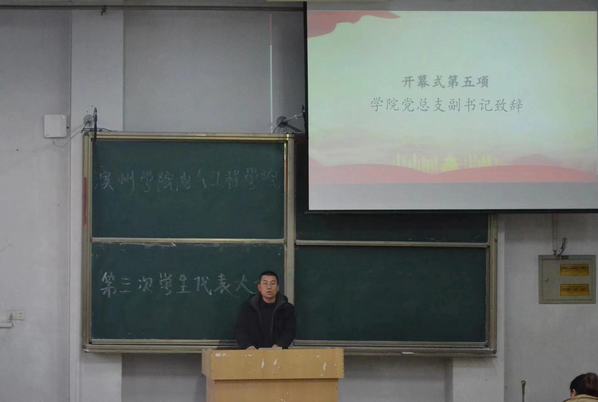 2023年12月22日,电气工程学院于5号教学楼106教室召开第三次学生代表大会。学院党总支副书记张志、团总支书记赵建斌及全体辅导员出席开幕式,学生代表张益玮主持会议。