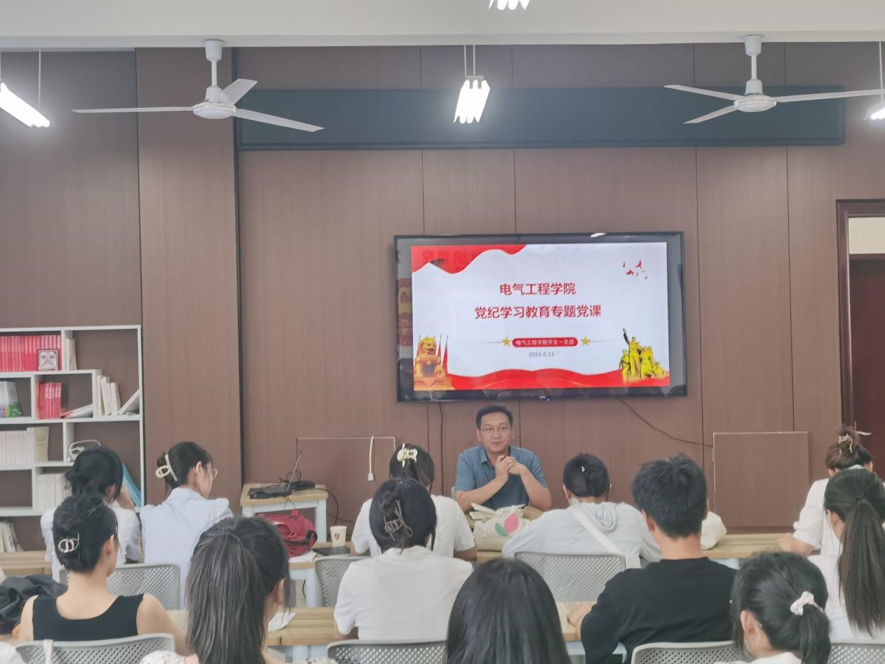 为深入推进党纪学习教育走深走实,引导学生党员明纪法、守底线,切实发挥先锋模范作用。2024年6月13日,电气工程学院党总支副书记金志杰在11教310活动室为全体学生党员讲授党纪学习教育主题党课。