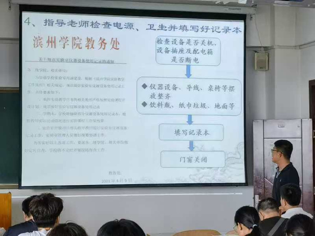 为进一步加强实验室安全管理,切实落实实验室安全责任,排除实验室安全隐患,强化师生安全意识,提高应急处理和防范自救能力。9月19日下午,我院开展了主题为“实验安全,从我做起”的实验室安全培训,培训会由实验室负责人张公永老师主持,周宣征老师主讲,承担实验课程的全体老师和部分学生代表参加了培训。