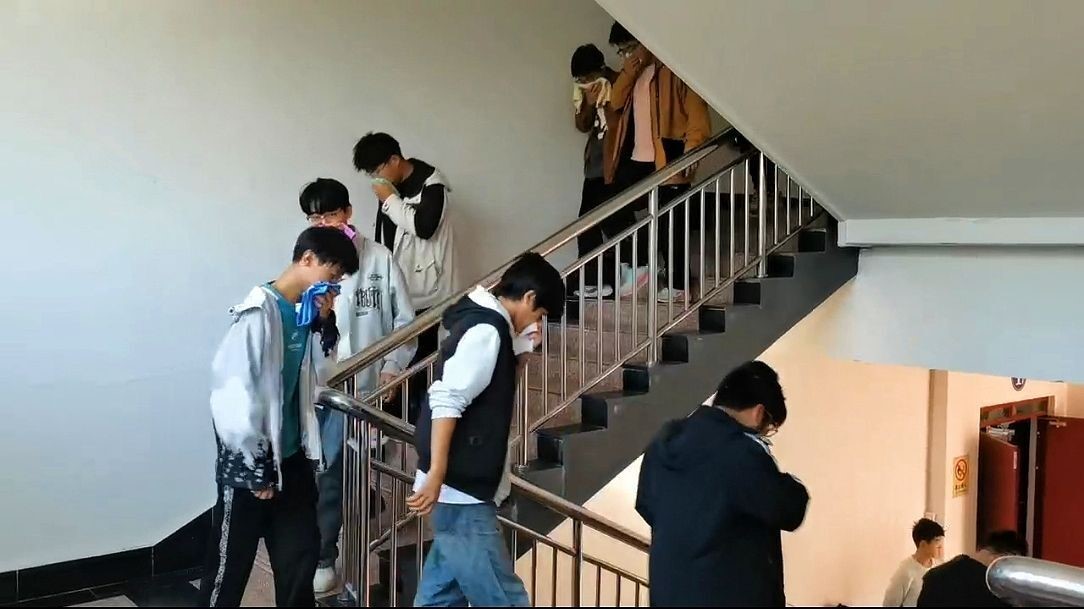 培训结束后,师生们进入指定教室进行消防应急疏散演练,消防广播随即拉响火警警报。听到火警报警后,所有师生迅速关闭电源,用湿毛巾捂住口鼻、弯腰俯身,离开房间,按照教室序号依次列队。所有学生在辅导员、教师的引导下,迅速撤离至指定地点,仅用时3分56秒,全程无任何推挤、踩踏等情况,疏散演练过程井然有序。