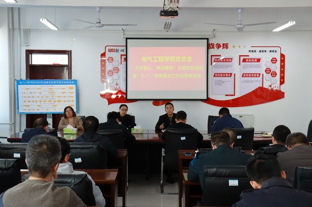 凝心聚力促发展,真抓实干强担当。11月5日,电气工程学院党总支开展“不忘初心、牢记使命”主题党日活动暨“6+1”年度重点工作任务推进会,进一步引领学院全体教职工加压奋进,推动学院各项工作部署高质量贯彻落实。