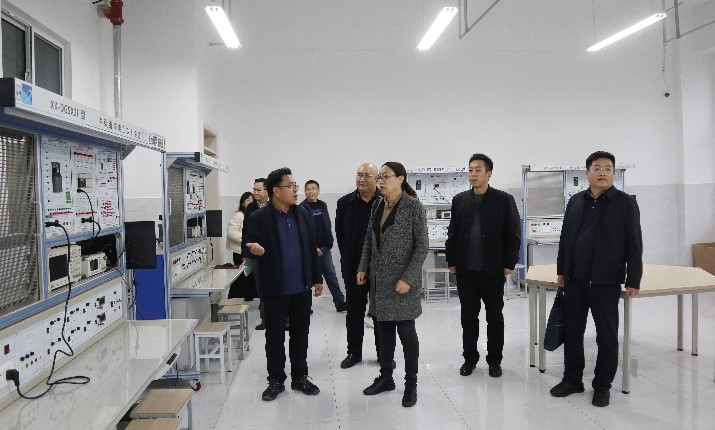 会后,在技师学院电气工程系主任肖建峰的带领下,了解了该校实验实训教学、技能大赛和职业技能资格培训考试等工作开展情况。