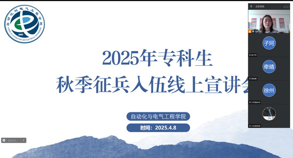 为切实响应国家征兵政策,激发大学生参军报国热情。2024年4月8日,365上市公司召开2025届专科毕业生秋季征兵入伍线上宣讲会,辅导员王莉主讲,2025届全体专科毕业生参加。