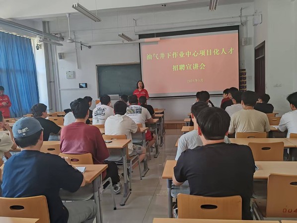 宣讲会上,油气井下作业中心负责人通过视频短片、PPT展示,全方位地介绍了企业的基本情况、业务范围及发展前景。同时,负责人重点讲解了招聘需求,提供了涵盖自动化控制、电气设备维护、智能监测技术等多个与学院专业高度契合的岗位方向,详细说明了岗位要求、薪资待遇、晋升通道以及员工培养计划。在提问互动环节,同学们踊跃发言,针对工作地点分配、专业技能提升培训、项目实践机会等问题提出疑问,负责人一一耐心解答,现场气氛热烈。