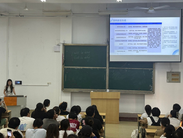 陈国涛结合自己公务员备考经历,从公告研读、岗位筛选的前期筹备,到笔试解题技巧、面试应答策略,再到岗位选择的“适配性”考量,进行了系统性讲解。同时,他还分享了面试环节的注意事项,包括礼仪规范、答题思路以及如何在面试中展现自信与专业素养。周可心分享了自己入职国家电网的经历,详细介绍了国家电网的招聘流程、考试内容和岗位要求,并结合自身专业优势,分享了在笔试和面试中的备考经验。互动环节,同学们积极提问,就备考时间安排、专业对口问题、面试技巧等方面与师兄师姐深入交流。两位毕业生耐心解答,并结合自身经验提出针对性建议,现场气氛热烈。