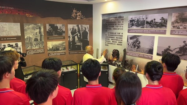清晨的阳光洒在纪念馆门前的纪念碑上,志愿实践队的队员们身着统一队服,怀着无比崇敬的心情整齐列队。在讲解员的引领下,大家有序步入馆内,仿佛瞬间穿越到了那个战火纷飞的年代。馆内陈列的每一件物品都承载着厚重的历史:泛黄的战地日记里,字迹虽已模糊却透着不屈的信念;锈迹斑斑的步枪和手榴弹上,仍能显现出当年激战的硝烟;一张张黑白照片中,革命先烈们坚毅的眼神穿越时空,诉说着为民族解放而战的决绝。讲解员的声音低沉而有力,从徐万梁村战斗的背景起因,到战士们以少胜多的英勇战术,再到村民们冒死支援前线的动人故事,每一个细节都深深牵动着队员们的心。大家屏息凝神,目光在展品上久久停留,有人悄悄拿出笔记本记录,有人对着先烈照片默默致敬,空气中弥漫着庄严肃穆的气息。