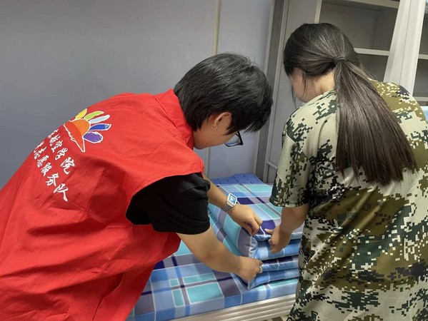 宿舍是新生在校园的“第一个家”,党员们深入宿舍,担起“贴心学长”的角色。他们手把手教新生整理内务,从叠“豆腐块”被子的技巧,到物品的分类摆放,耐心细致地示范讲解,帮助新生养成良好的生活习惯。同时,党员们利用休息时间与新生促膝长谈,倾听他们初入大学的迷茫与困惑。“学长,大学的课程很难吗?”“我不知道该怎么平衡学习和社团活动。”面对新生们的疑问,党员们结合自身经历,分享学习方法和时间管理技巧,用真诚的交流拉近与新生的距离,让他们感受到学院大家庭的温暖。