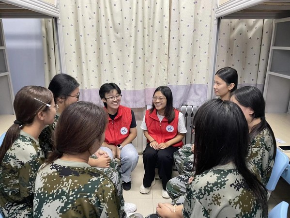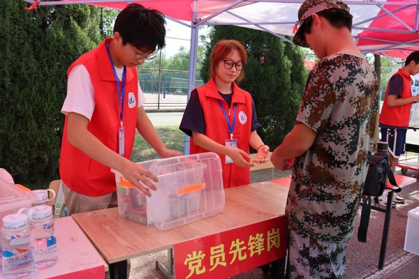在军训现场,党员先锋岗的学生党员们化身“后勤保障员”,时刻关注新生的需求。他们顶着烈日,在训练场边设立服务点,备齐了藿香正气水、创可贴、矿泉水等常用物品,及时为身体不适的新生提供帮助。看到有新生因训练强度大而面露疲惫,党员们会主动上前搀扶,轻声安慰并协助送往休息区;训练间隙,他们还会组织新生开展轻松的小游戏,缓解大家的紧张情绪,让严肃的训练场增添了几分温馨。