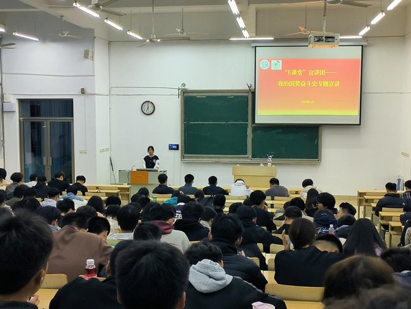 商世昌向与会学生介绍了本次“E课堂——我的国奖奋斗史”主题宣讲的目的和意义,强调了榜样对于新生成长的重要引领作用。随后,三位国奖奖学金获得者依次上台分享。杨一鸣以自身的学习经历为切入点,讲述了如何在繁重的课程学习中合理规划时间,做到高效学习,同时积极参与科研项目,提升自己的实践能力和创新思维。邝珍则着重分享了自己在面对学习困难和挫折时的心态调整方法,鼓励新生们要保持积极乐观的心态,勇于挑战自我,不断突破舒适区。肖桂婷则围绕如何平衡学业与学生工作、社团活动的关系,给出了自己的宝贵建议,她认为合理安排时间、明确优先级是关键,同时要善于利用碎片化时间,提高学习和工作效率。三位分享者的精彩讲述赢得了新生们的阵阵掌声,现场气氛热烈而活跃。