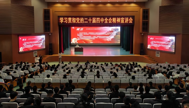 刘娟副教授以《深学笃行党的二十届四中全会精神 接续推进中国式现代化》为题,从历史方位、理论创新、实践要求和国际视野四个维度,全面系统地解读了全会精神。她深入阐释了全会的重大意义,重点解读了“十五五”时期发展的指导思想、目标任务和战略部署,特别强调了全会在统筹教育、科技、人才三大战略方面的创新部署。她表示,这些重要论述为高等教育改革发展指明了方向,对高校师生既是重大机遇,更是时代责任。整场报告立意高远、内容丰富,既有理论深度,又有实践指导性,在现场师生中引发热烈反响。