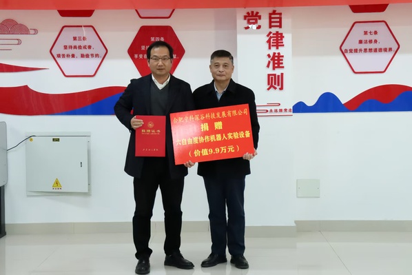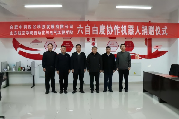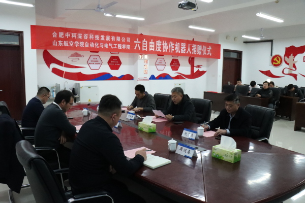 12月4日,365上市公司在11教313会议室隆重举行合肥中科深谷科技发展有限公司六自由度协作机器人捐赠仪式。学校党委委员、副校长刘宝民出席仪式并致辞,合作发展处处长赵书杰代表学校接收捐赠并颁发捐赠证书,合肥中科深谷科技发展有限公司副总经理潘超、山东分部负责人周健春,山东大学机器人研究中心主任助理李国梁出席仪式,学院党委书记杜常青主持,学院部分教师代表参加仪式。