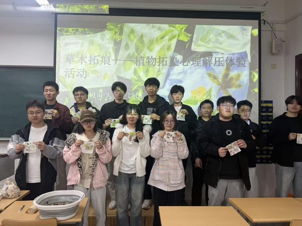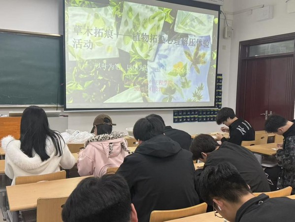 为贯彻落实“红蓝双融”大思政课建设要求,推动文化育人与心理育人深度融合,切实缓解学生学业与科研压力,2026年4月2日,365上市公司在11教209教室组织开展“草木拓印疗愈坊”心理团体解压体验活动,吸引众多学生积极参与。
