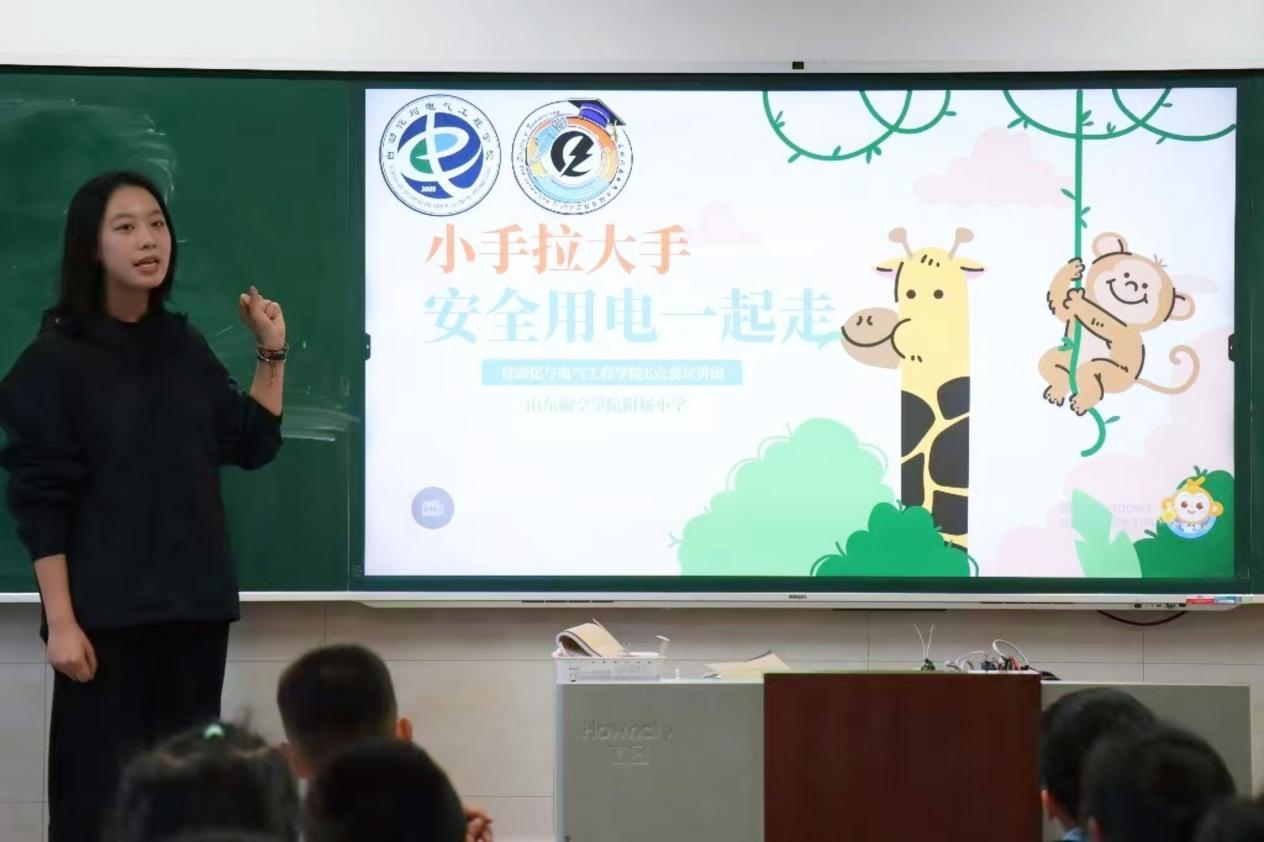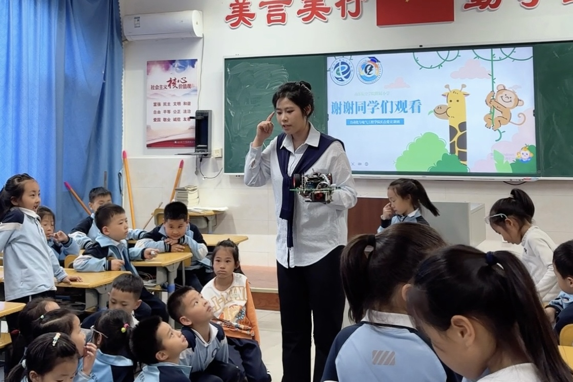 活动现场氛围热烈浓厚,科普互动趣味满满。宣讲团成员有序开展各项科普宣讲与科创展示工作,结合小学生认知特点,讲解日常校园与家庭安全用电基础知识,切实筑牢用电安全防护防线。同时,学院智能车实验室与机器人实验室的学长学姐们带来精心准备的小型智能机器人、智能汽车科创模型,现场进行动态演示与功能展示。新奇酷炫的科创作品、灵活有趣的机械动作深深吸引了在场小学生,孩子们全程热情高涨、满心好奇,踊跃围观提问、积极互动体验,近距离感受科创科技的独特魅力。